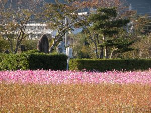 | 土佐総社 満開のコスモスの向こうにこぢんまりと鎮座する |