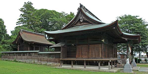 | 拝殿、幣殿、本殿 拝殿、幣殿は明治直前の文久年間のものだが、三間社流造の本殿は、明暦年間の建物だというから、17世紀の中頃のものだ。 |