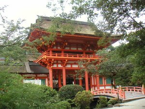 祭神は 姫が鴨川で身を清めていたところ、上流から丹塗りの矢が流れてきた。矢は、美しい男神となって姫と結ばれ、生まれた子が、上宮の祭神 従ってこの宮を 3万9千坪の境内は、糺の森と呼ばれる鬱蒼たる森で、 |