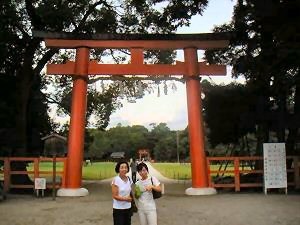| 上賀茂神社の大鳥居 この大鳥居から奥に見える二ノ鳥居まで 広い馬場になっていて、五月五日には 競馬会神事が行われる。 |